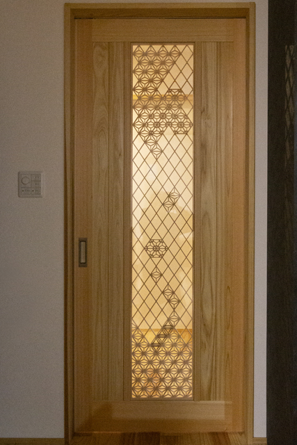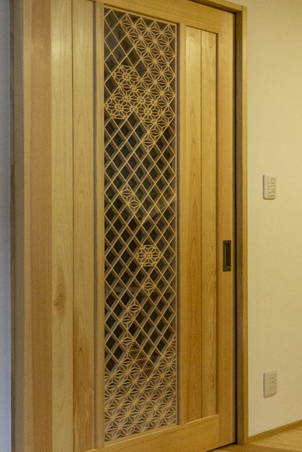 相模原市南区Y邸に納入させて頂いた幾何学模様が美しい組子引戸のご紹介。