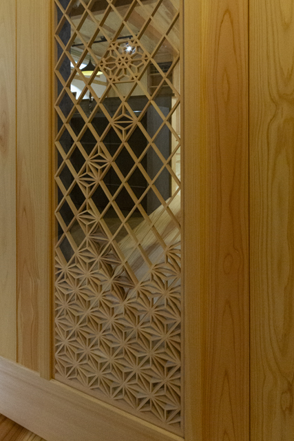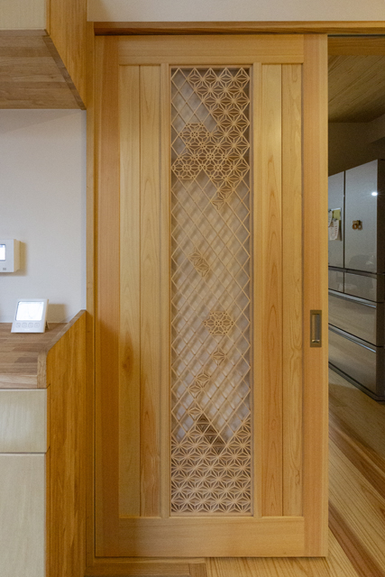 主張しすぎない木目と温かな色合いが、組子の繊細さを引き立て、和モダンな空間に自然と溶け込んでいます。