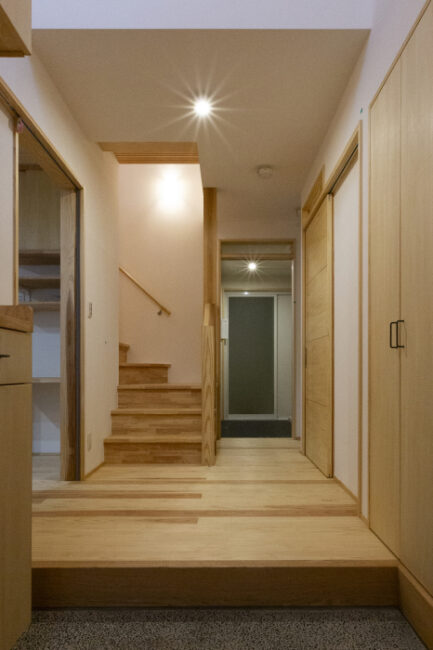玄関から特に目立つ位置には番匠木工による組子の入った建具が入る予定です(建具が入ったらまたブログで紹介したいと思います)。