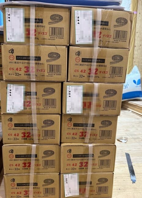 青木工務店の構造計算ではその数値を見込んでおりませんが、普段の施工でこのビスで石膏ボードを施工する事で構造に余力が生まれ、後のリフォームやまた大きな法律改正で壁量の見直しが行われた時にも既存不適格とならなければ良いな、という思いもあります。