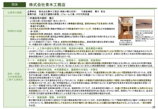 林野庁さんから青木工務店として意見を出してください、と要請をいただいたので日々思う事を張り切ってまとめ作成し、10月に行われた審議会で私の意見も資料の一つとして出されておりました。