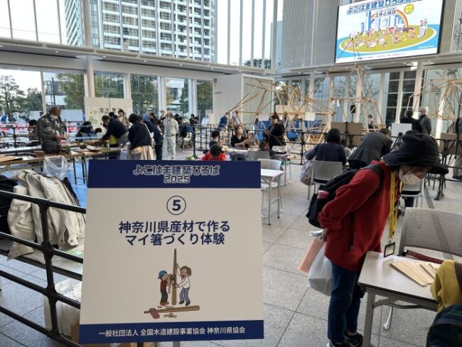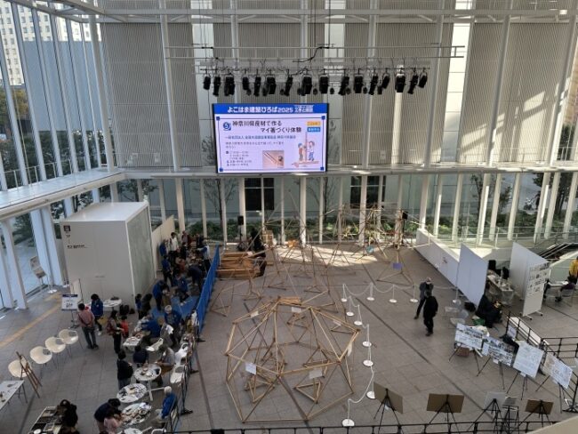 先週土曜日は横浜市役所のアトリウムで行われているよこはま建築ひろば2025子供ワークショップで出展している全木協神奈川県協会のブースを会長として陣中見舞いしておりました。