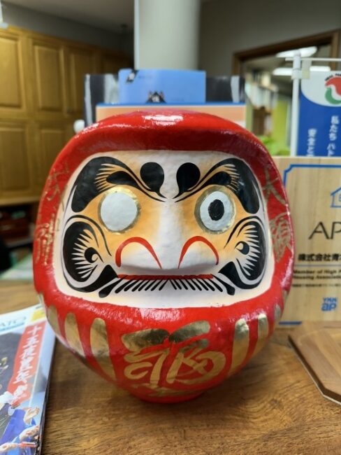 プレゼントのだるまさんもいただき、会社で片眼を入れて商売繫盛と工事の安全を祈願しました。