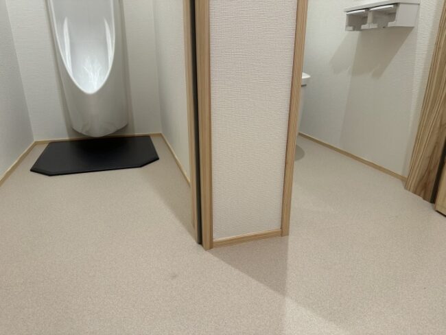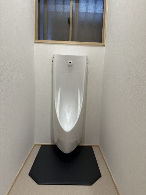 今回は専用の小便器にドアを設置して落ち着いては入れるようにしました。