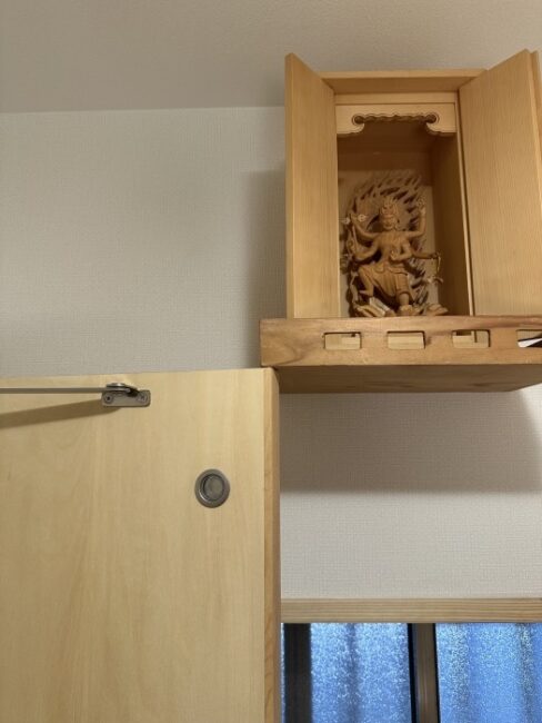 仏教のトイレの神様の台に当たらないようにドアの高さも気を使いました。