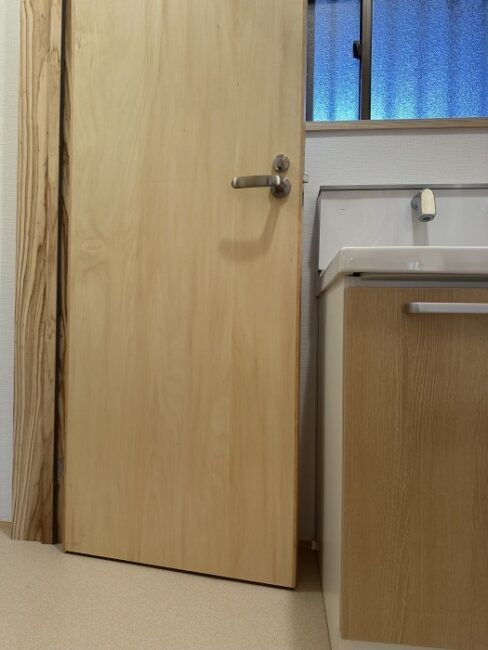 トイレのドアの幅も洗面台の幅を考慮しつつ、ギリギリまで広くするようにしました。